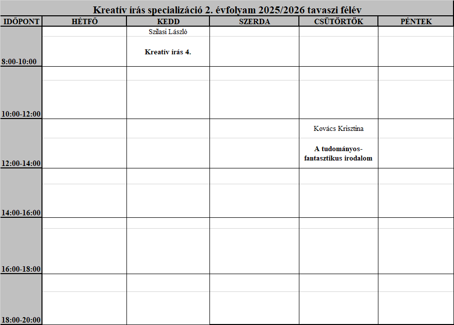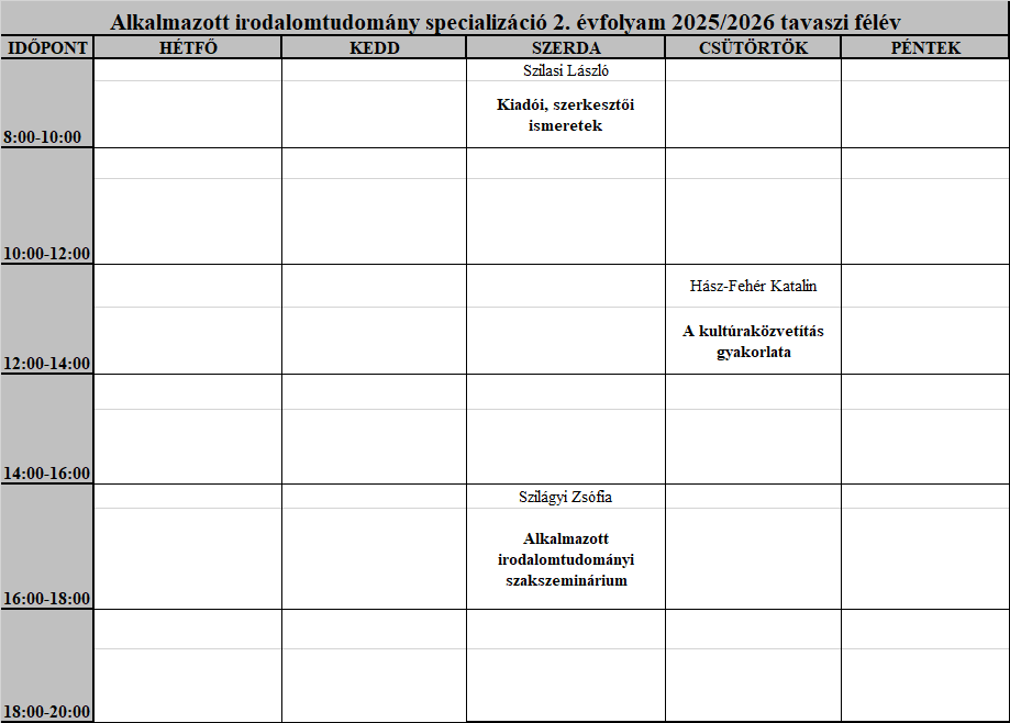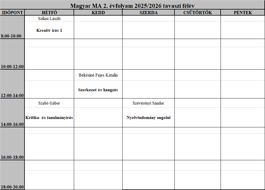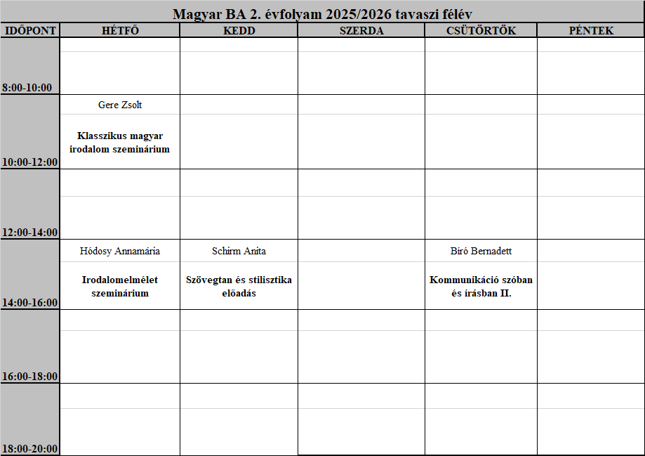 Magyartanár osztatlan II. évfolyam / 2024-25 / 2. félév