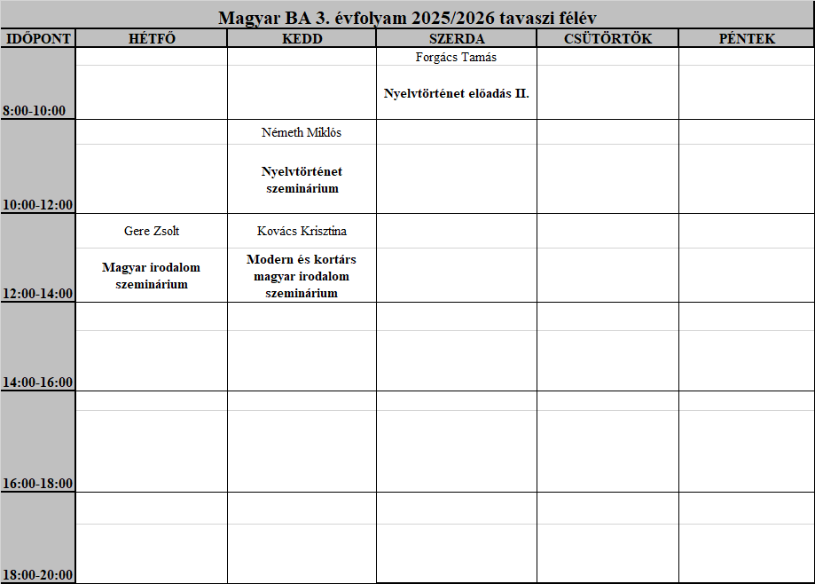 Magyartanár osztatlan III. évfolyam / 2024-25 / 2. félév