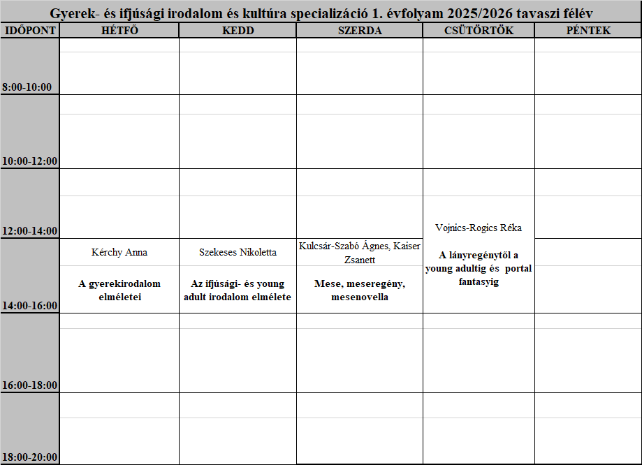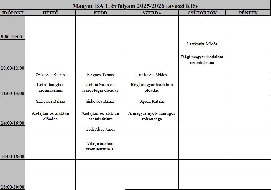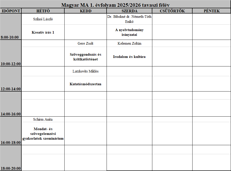 Magyartanár osztatlan I. évfolyam / 2024-25 / 2. félév